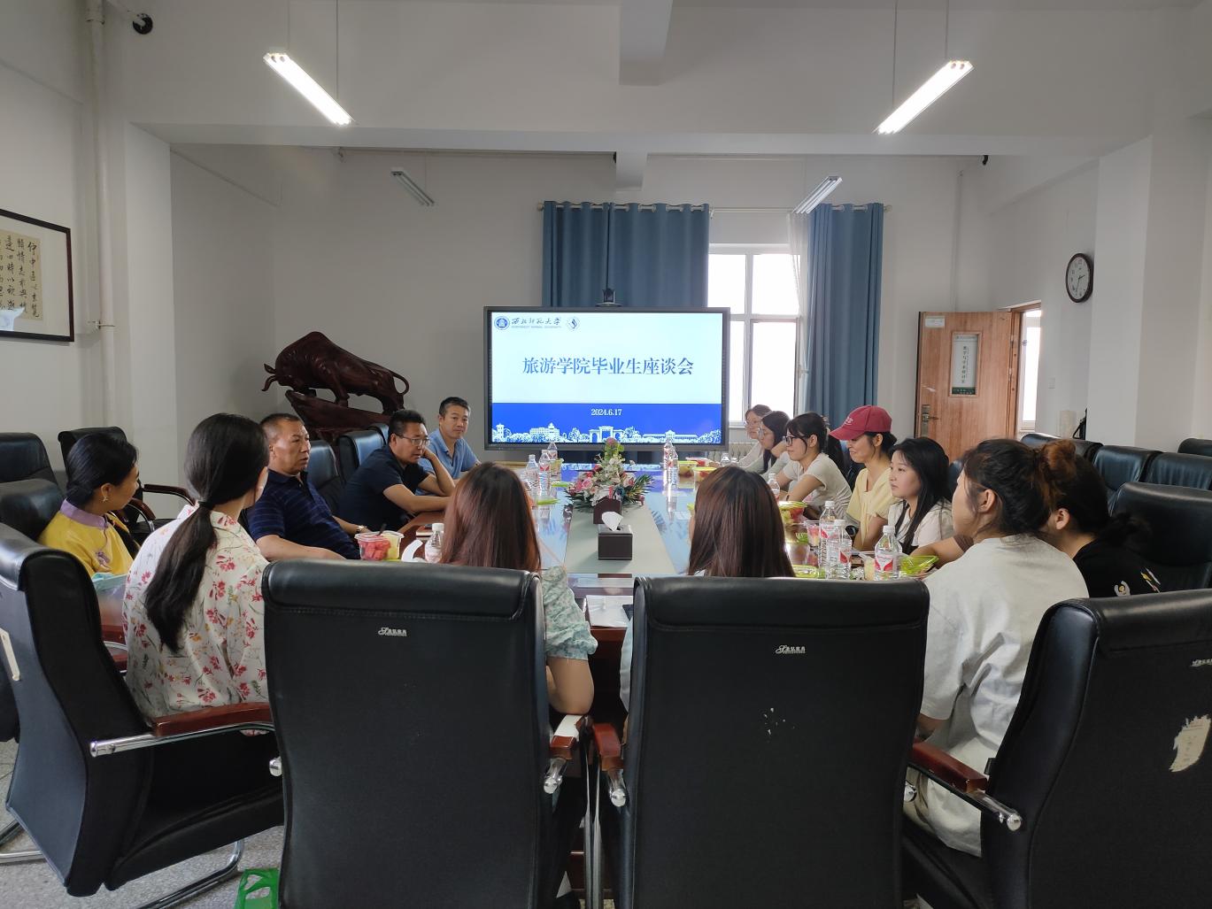 2024年6月17日,beat365中文官网在云衢楼1101会议室召开了2024届毕业生座谈会。学院党委书记赵兴虎,院长梁旺兵,党委副书记戴小武,班主任陈锴娴,专职辅导员赵新帮,思想助理慕娜娜以及2020级旅游管理2班的毕业生们参加了此次座谈会。会议旨在听取同学们对学院发展的意见和建议,了解同学们在求职就业中面临的困难,并以身边的案例鼓励同学们积极就业。