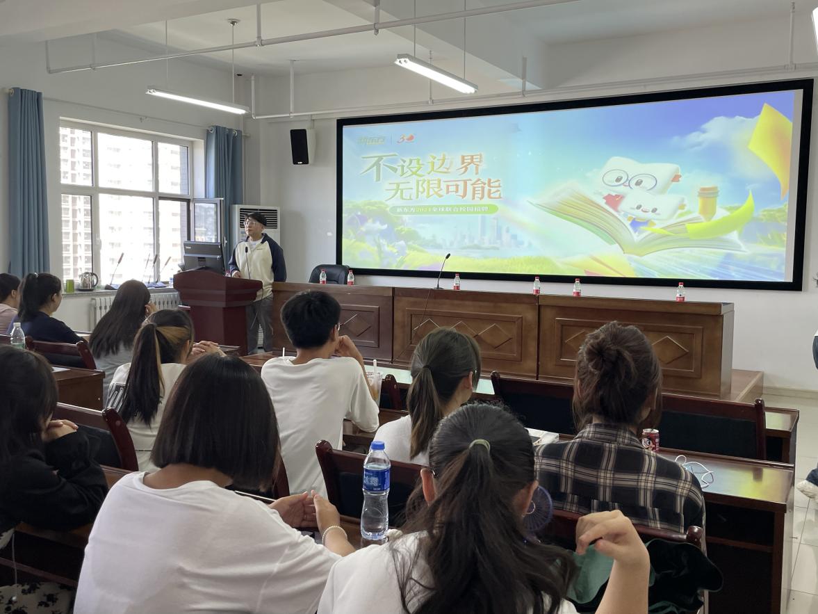 宣讲阶段,招聘主管白宇麒就企业的基本情况进行了介绍,包括新东方的创办经历、发展理念、公司文化、业务板块及人才岗位需求等情况,并解答了同学们关于就业求职的有关疑问,人力资源总监朱丽华真诚表示欢迎2024届优秀毕业生学子加入新东方。
