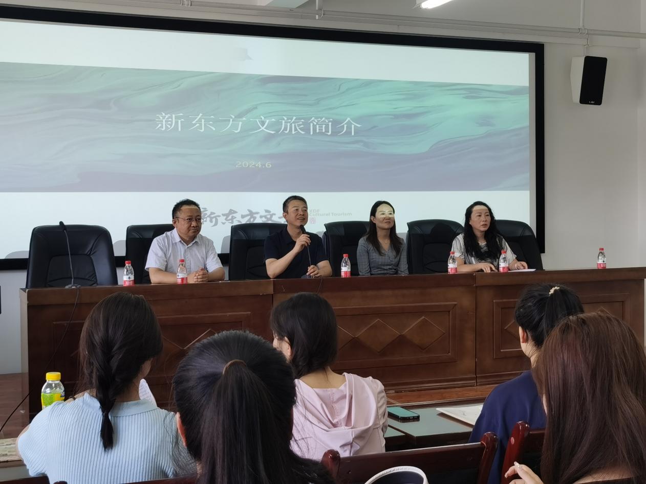 2024年6月14日下午,新东方兰州学校人力资源总监朱丽华,招聘主管白宇麒、文旅讲师主管高祥、招聘专员崔雅雯、文旅计调邓建军一行前往beat365中文官网开展就业专场招聘,学院副院长柴亚林、党委副书记戴小武、实习主任陈娟娟、辅导员赵新帮以及2020级、2021级和2022级近150名本科生参加。