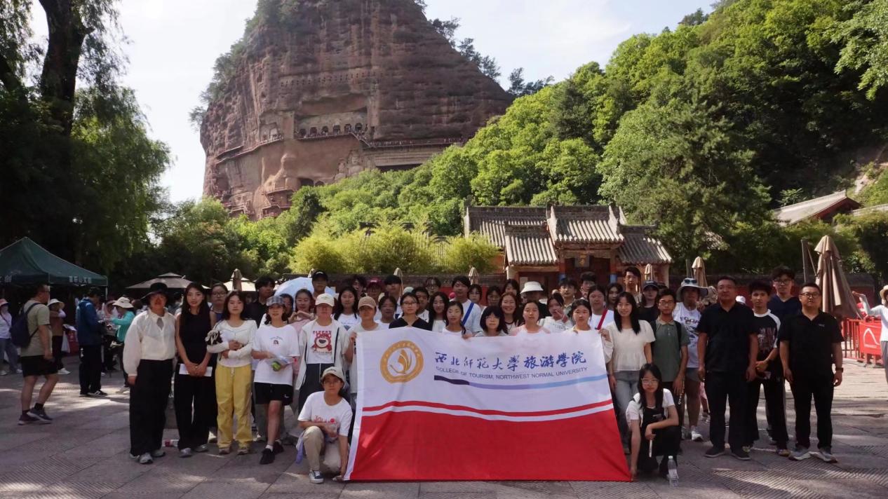 6月29日,师生们首先来到被誉为“东方雕塑艺术陈列馆”的麦积山石窟。这里群峰叠翠,景色秀丽,石窟内的壁画和雕塑技艺精湛,让人叹为观止。师生们跟随专业讲解员,认真聆听每一幅壁画、每一尊雕塑背后的故事,领略了千年石窟的艺术魅力和文化价值。期间,学生们开展《甘肃省农旅产品市场需求调查问卷》调研,与石窟管理人员和游客进行深度交流和访谈,深化《社会调查原理与方法》课程中关于问卷设计、资料收集方法以及调查组织与实施相关知识的学习。