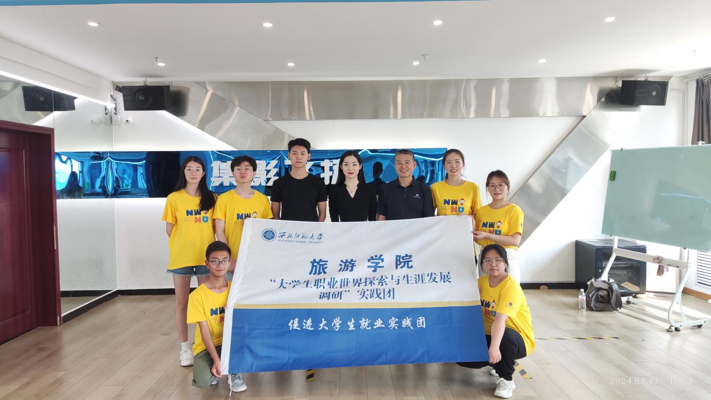 7月17日下午,beat365中文官网党委副书记、纪委书记戴小武,西北文化旅游人才发展研究中心主任种媛副教授,带领“大学生职业世界探索与生涯发展调研”促进大学生就业实践团,前往兰州集影飞扬艺考培训中心开展访企拓岗活动,并进行了校友回访工作。