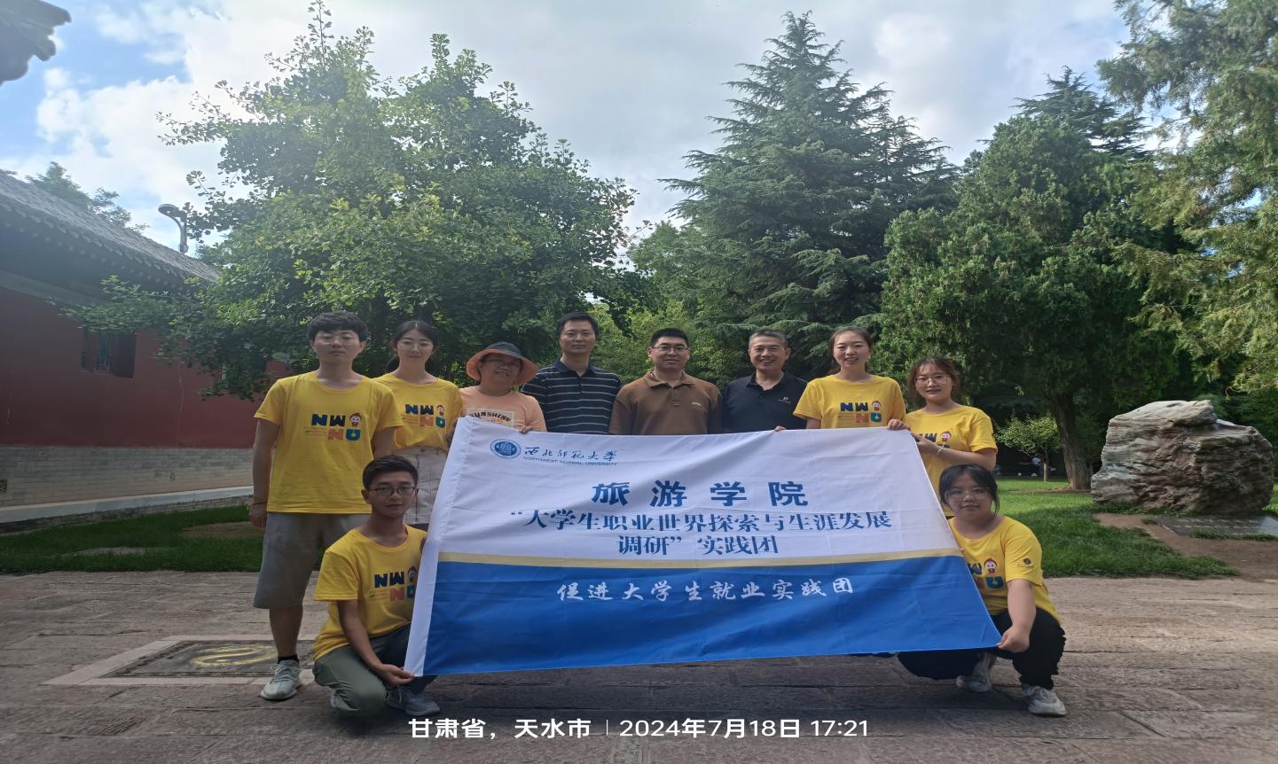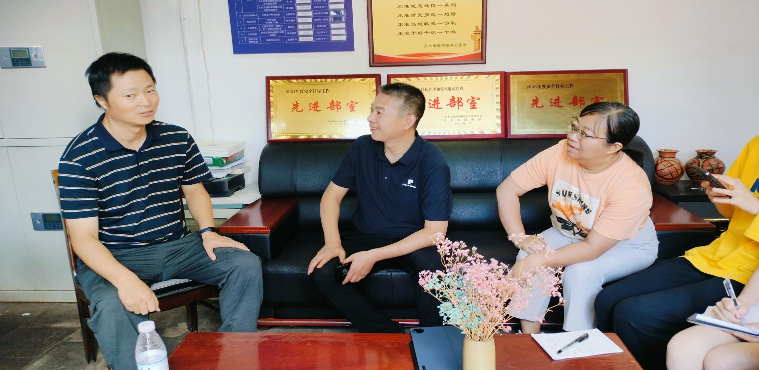 7 月 18 日下午,beat365中文官网党委副书记、纪委书记戴小武,西北文化旅游人才发展研究中心主任种媛副教授,带领“大学生职业世界探索与生涯发展调研”促进大学生就业暑期社会实践团,前往天水市博物馆开展“访企拓岗”促就业和毕业生回访活动。
