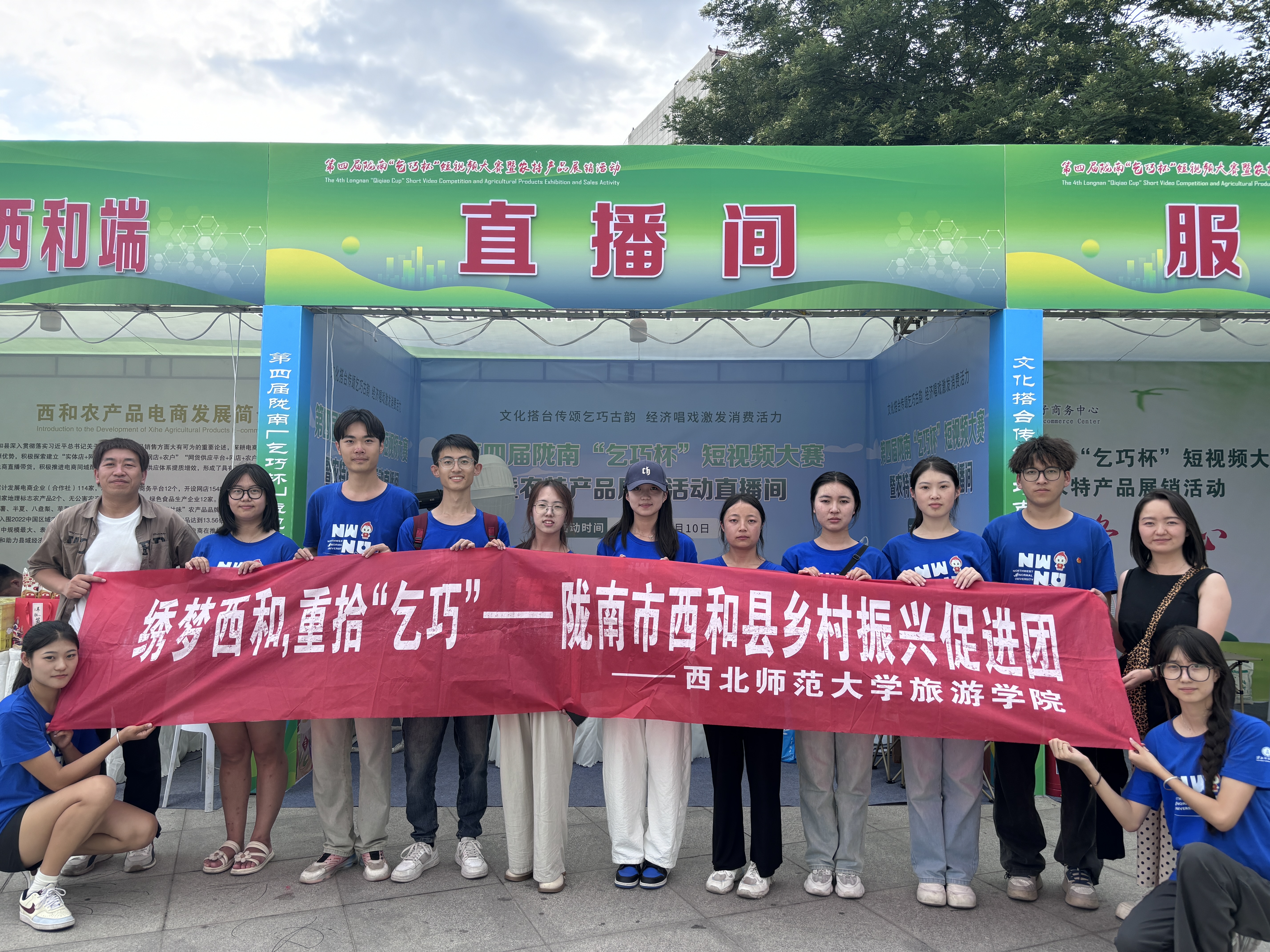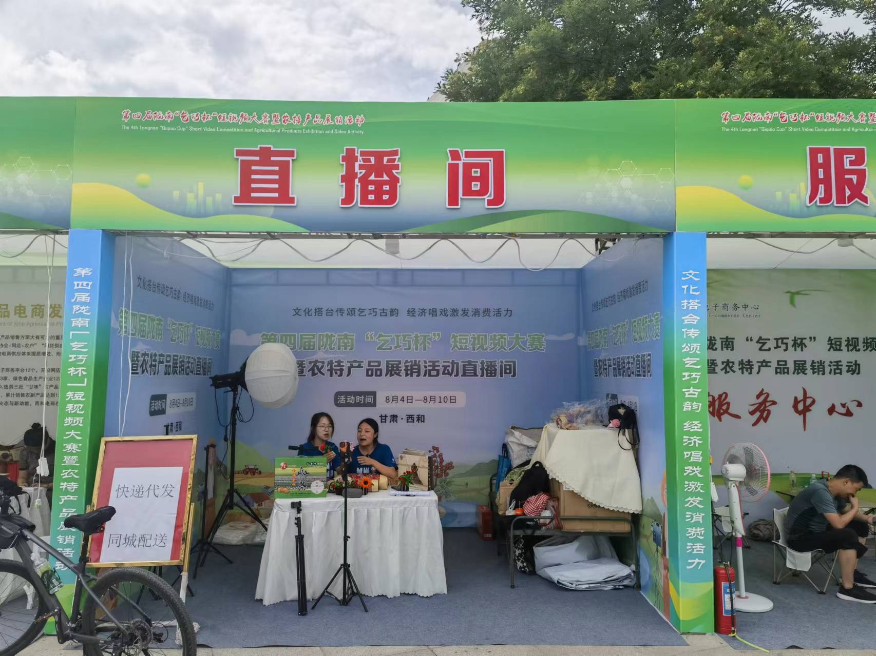8月5日“数字经济·电商赋能”农特产品展销暨“乞巧杯”短视频大赛在西和县避难广场开展。实践团指导教师鲁梦鸽带领团队成员要积极顺应时代发展趋势,利用互联网直播平台方式,从而更加高效的助力当地农特产品进行展销。队员们开设自媒体账号,充分利用短视频直播机制,分别展开活动现场主会场、分会场直播,为当地农户、残疾人、小型农产品生产商等商家协助直播带货,用自己的实际行动真正做到了知行合一,进一步推动了乡村振兴。