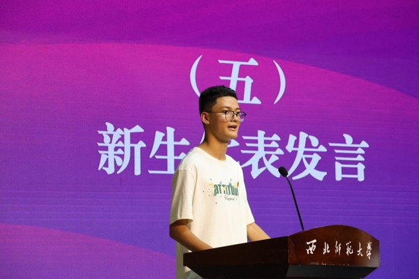 新生代表马玉涛表达了作为新生代表发言的荣幸之情,并激励所有2024级新生铭记院训,在不断学习与求知的过程中完善自我。