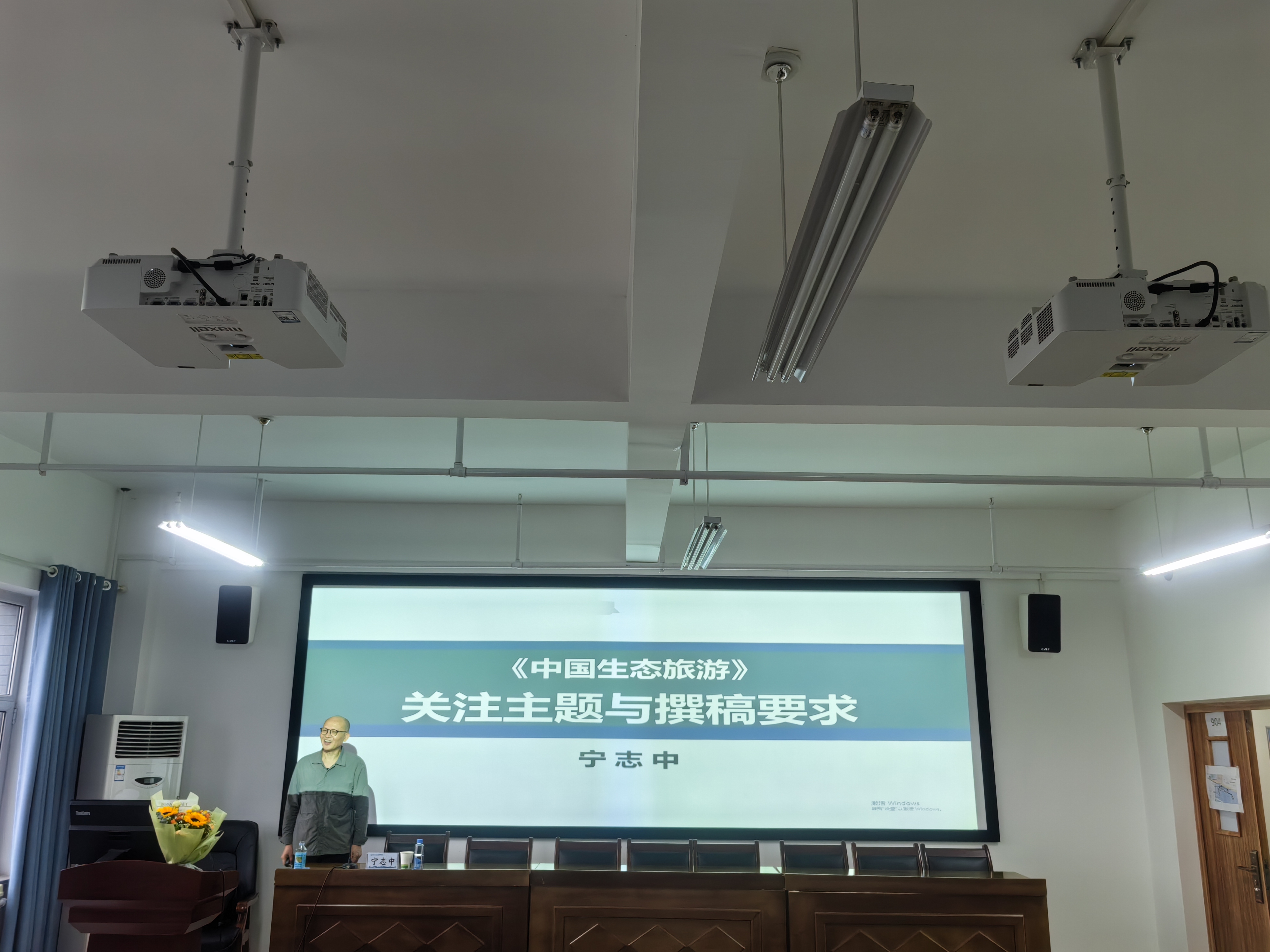 9月12日下午,应学院邀请,中国科学院地理科学与资源研究所《中国生态旅游》专职副主编,高级工程师,旅游研究与规划设计中心总规划师宁志中教授来我校做题为“《中国生态旅游》期刊关注主题与论文撰稿要求”学术报告,报告会在文科实训楼904会议室举办。此次报告由学院副院长武克军主持,相关专业老师、研究生参加了报告会。