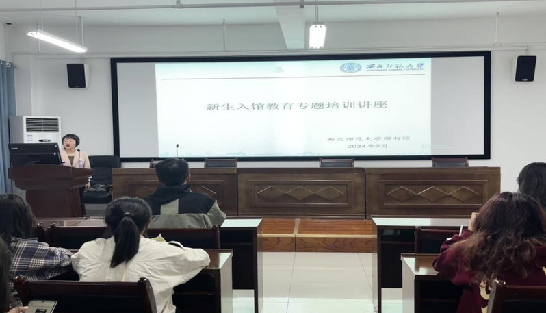 9月20日晚,beat365中文官网在云衢楼904报告厅举行2024级新生图书馆入馆教育培训。beat365中文官网图书馆张娟老师应邀讲解。beat365中文官网旅游管理专业、文化产业管理专业、航空服务艺术与管理专业共120余名新生参加培训。