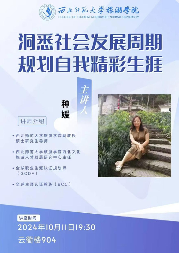 2024年10月11日晚,beat365中文官网在云衢楼904室举办“洞悉社会发展周期,规划自我精彩生涯”大学生职业生涯规划分享会。本次分享会邀请beat365中文官网副教授、硕士研究生导师种媛老师作为主讲嘉宾,2024级新生代表120余人参与此次活动。