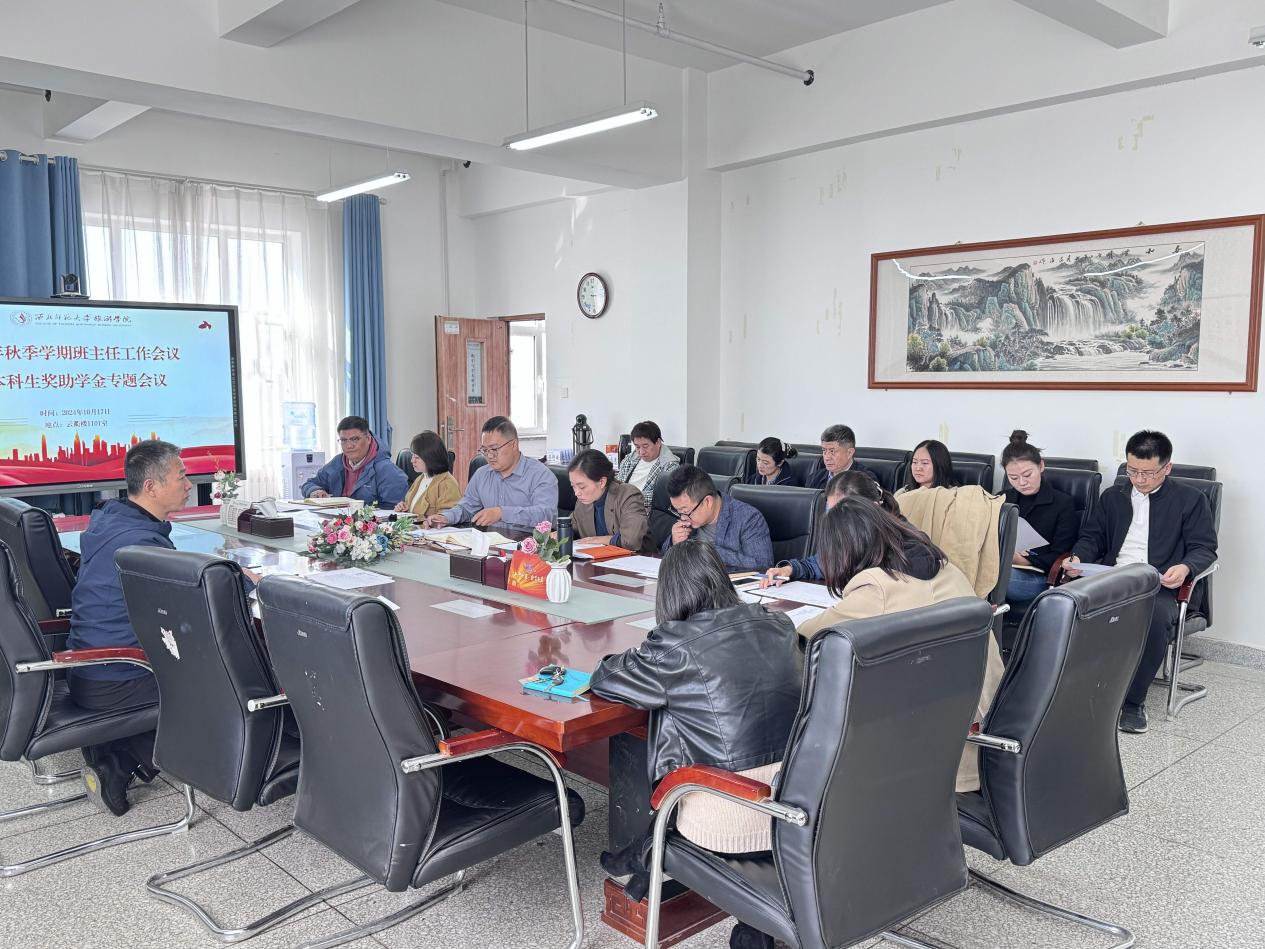 2024年10月17日,beat365中文官网在云衢楼1101室召开2024年秋季学期班主任会议暨本科生奖助学金专题会议。全体本科生班主任和辅导员参会,学院党委副书记戴小武主持会议。