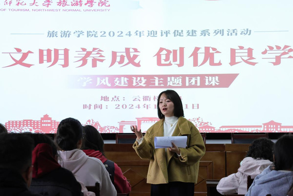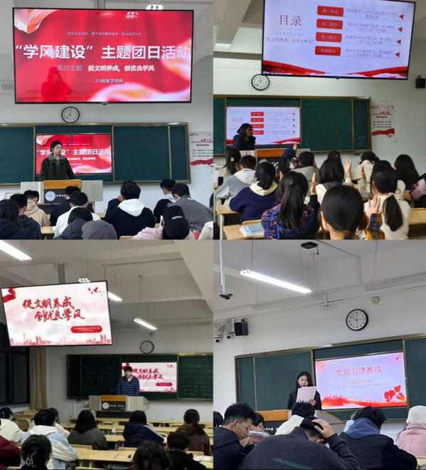 10月21日—25日,各班级召开“促文明养成,创优良学风”学风建设主题团课活动,全体同学共同学习学风建设和审核评估方面的知识,讨论如何从现在做起,从自身做起,以饱满的热情,昂扬的斗志积极投身到学校教学评估工作中去。