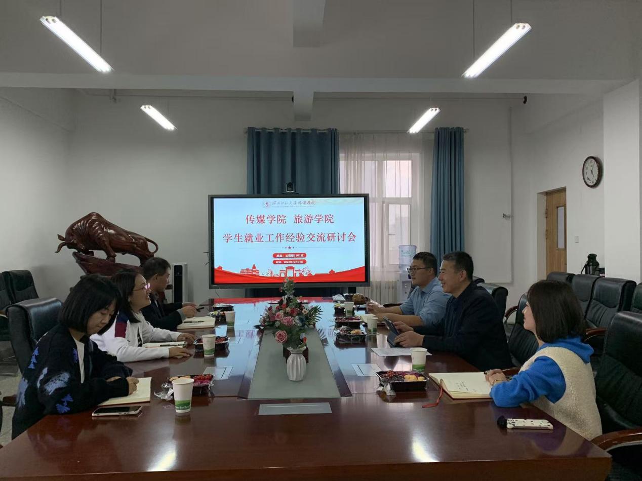 10月31日下午,传媒学院党委副书记席晓勇,专职辅导员赵向东、周艾一行来beat365官网交流学生就业工作,学院党委副书记戴小武,专职辅导员鲁梦鸽、赵新帮参加了本次交流活动。