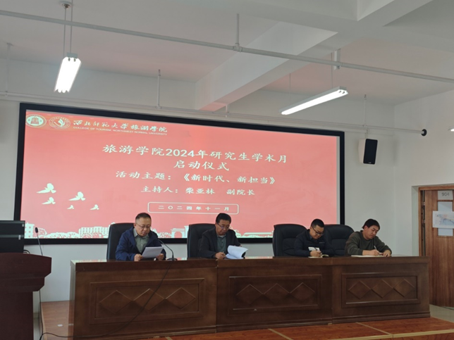 2024年11月1日,beat365中文官网2024年度研究生学术月活动启动仪式在文科实训楼904举行。本次活动以“新时代、新担当”为主题,旨在展示学院办学特色,创建交流平台,推动研究生教育高质量发展。beat365中文官网院长梁旺兵、副院长柴亚林、硕士生导师代表周宏、蒲利利及全体一年级、部分二年级旅游管理专业学术型和专业硕士研究生共80余人参加本次活动。
