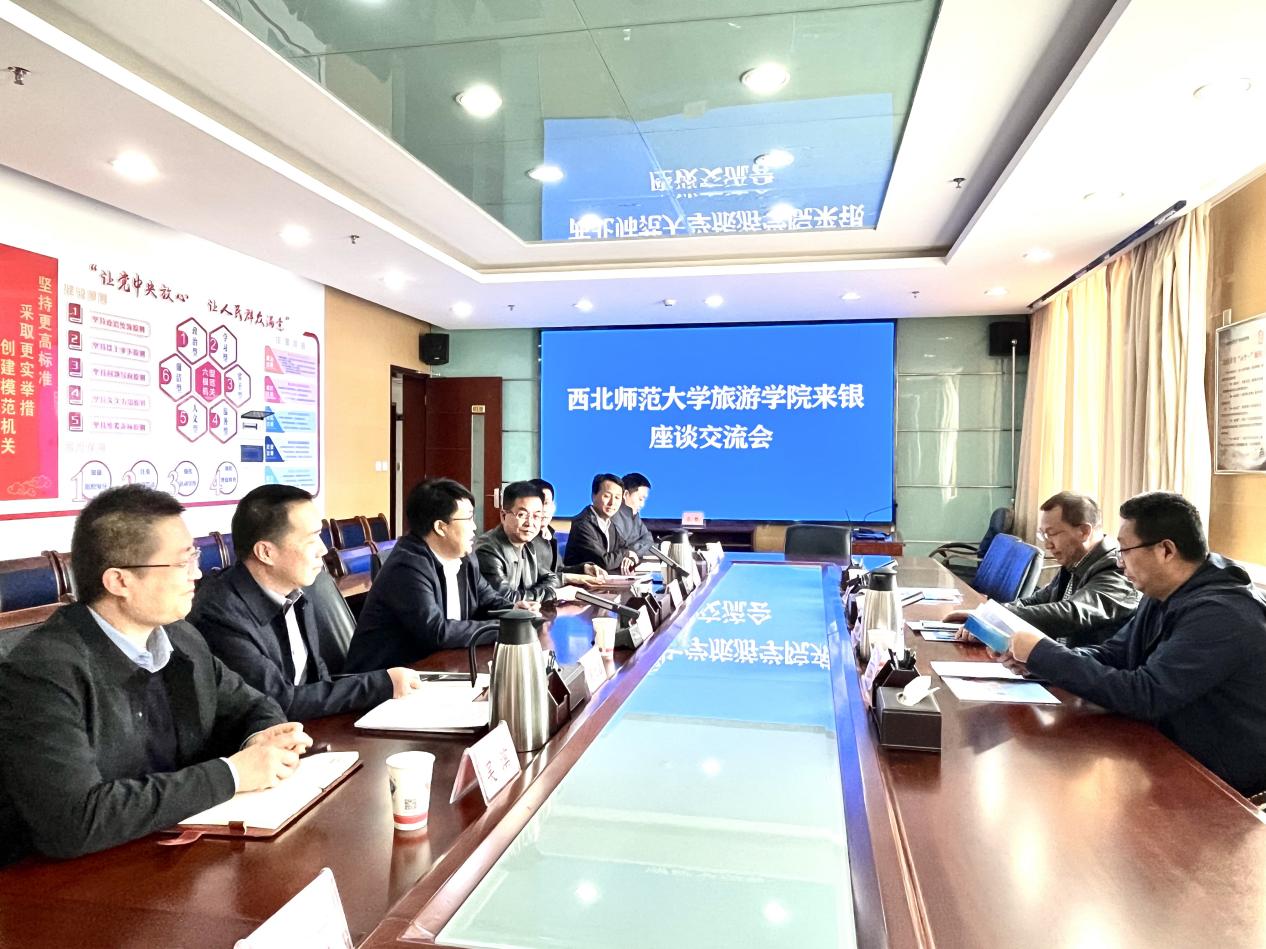 在白银白银市文化广电和旅游局,双方就白银市“十五五”文化广电和旅游发展规划、工业旅游重大项目策划、红色旅游提质升级方案、黄河文化旅游品牌建设以及乡村旅游示范村创建进行了深入交流。梁旺兵介绍了近年来学院在旅游助推乡村振兴工作方面的经验,提出在白银市因地制宜开展“乡村旅游新村民行动”,发挥beat365中文官网的专业优势,力争在白银市打造文化旅游赋能乡村振兴的品牌模式。赵兴虎希望利用好白银市优越的交通区位优势,进一步开展广泛的校地合作。