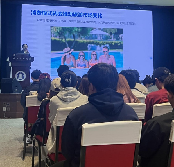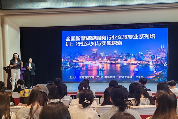 2025年4月17日下午,应学院邀请,远舟酒店管理(苏州)有限公司校企部总监沈永格在学生发展中心202为2023级旅游管理专业全体同学及2022级航空服务艺术与管理专业部分同学进行了实习生项目的宣讲。