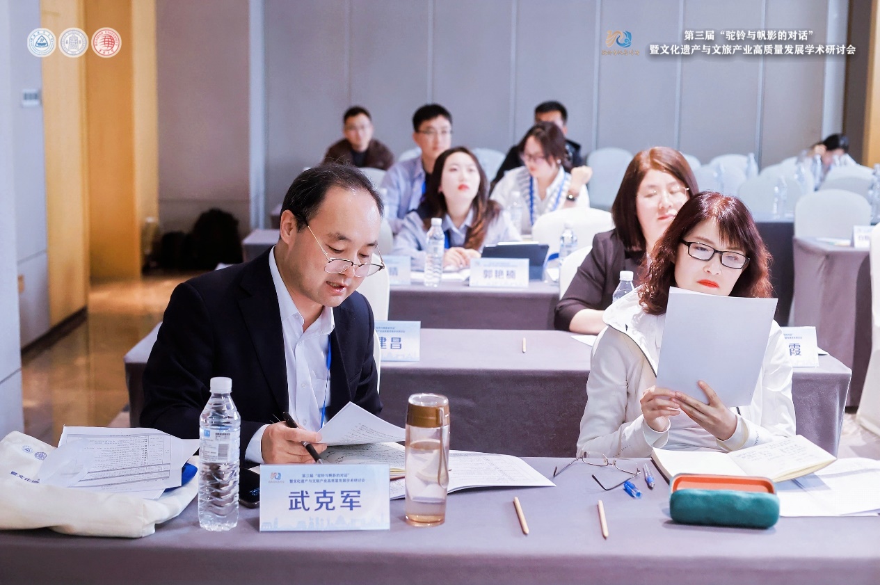 在分论坛学术交流中,beat365中文官网参会师生聚焦"丝路文旅融合创新研究"方向,围绕长城文化谱系建构、民族非遗活态传承、数字文旅安全等前沿领域,汇报了《丝路文化遗产旅游区生态承载力评价》《数智嵌入赋能旅游发展》等10余项创新成果。武克军作为点评专家,从方法论创新、实践应用维度对汇报成果进行专业指导,此次对话展现了我校在丝路文旅研究领域的人才培养成效,为构建跨学科研究范式提供了新思路。