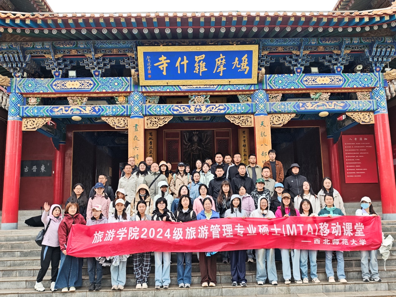 5月4日,移动课堂的末站来到武威鸠摩罗什寺,专业导师结合寺内建筑、历史文化遗迹,生动讲解了旅游投资与文物保护、文化遗产旅游价值等知识。同学们围绕鸠摩罗什寺旅游发展现状与问题积极探讨,从游客体验提升、旅游线路规划等角度提出见解。