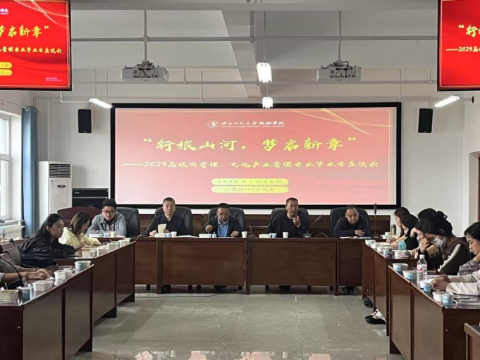 5月16日,beat365中文官网在云衢楼904召开“行旅山河、梦启新章”——2025届旅游管理、文化产业管理专业毕业生座谈会。beat365中文官网党委书记赵兴虎、院长梁旺兵等学院领导班子成员出席座谈会,系主任、班主任、辅导员等老师及2025届旅游管理与文化产业管理专业全体毕业生参加会议,座谈会由党委副书记戴小武主持。