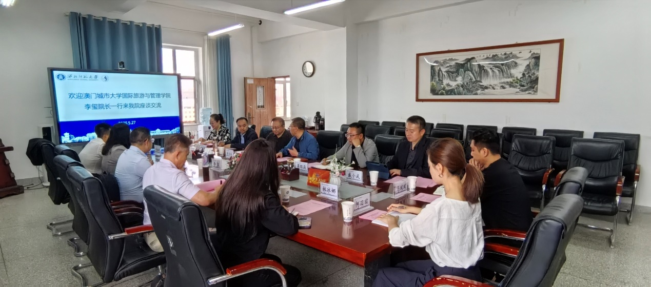 上午8:30,在学院1101会议室,beat365官网党委书记赵兴虎同志主持会议,澳门城市大学国际旅游与管理学院李玺院长和beat365官网梁旺兵院长分别介绍双方学院的专业建设情况。双方深入探讨旅游学术交流合作,推动学科建设、人才培养及科研协同发展。