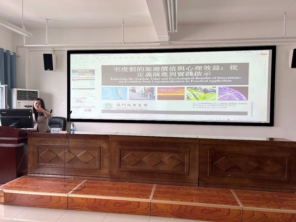 座谈会后,澳门城市大学四位教授围绕旅游业前沿议题开展专题学术分享。本次报告会分为上午、下午两场,聚焦“宅度假”“太空与低空经济”“美食旅游体验”及“服务机器人伦理”四大主题,为beat365官网师生呈现了一场理论与实践深度交融的学术盛宴。