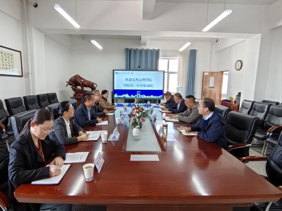 2025年4月14日,宝鸡文理学院任晓峰院长一行来beat365官网座谈交流。beat365中文官网院长梁旺兵、副院长柴亚林、武克军、院长助理包军军参加座谈交流。