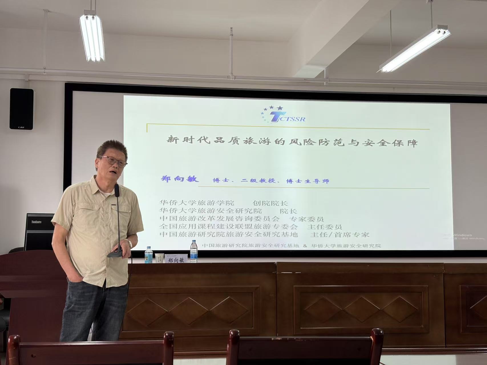 7月1日下午15时,华侨大学beat365中文官网郑向敏教授应邀在云衢楼904会议室做主题为《新时代品质旅游的风险防范与安全保障》的学术报告,beat365官网武克军副教授主持本次报告。