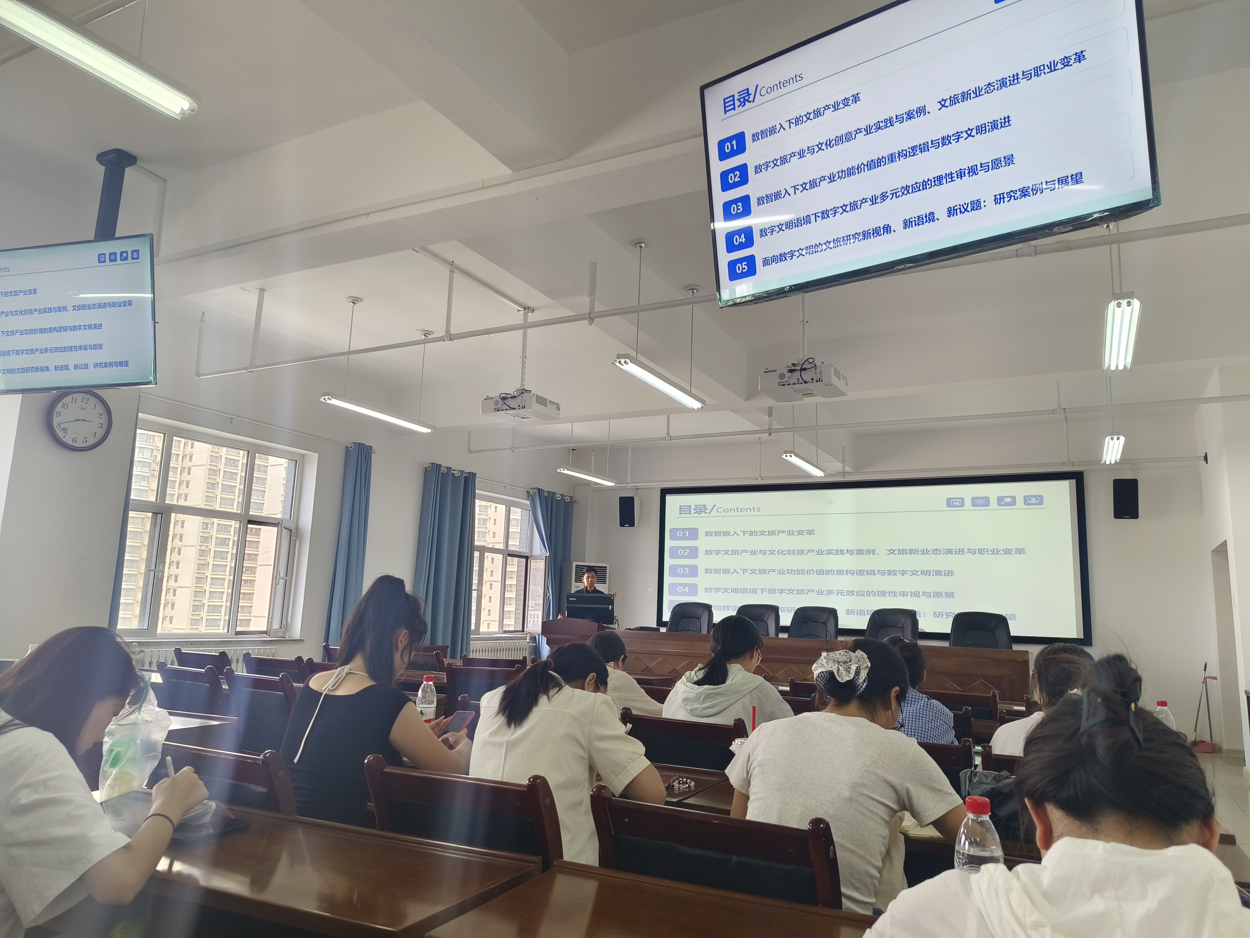 2025年7月12日下午,小学期系列活动持续展开。文化产业管理系主任马斌斌副教授在文科实训楼904会议室作了《文旅新业态与自我成长》精彩讲座。马斌斌老师从数智嵌入下的文旅变革、数智文旅产业与文化创意产业实践与案例、文族新业态演进与职业变革、数智嵌入下文旅产业功能价值的重构逻辑与数字文明演进、数字文明语境下数字文旅产业多元效应的理性审视与愿景、面向数字文明的文旅研究新视角、新语境、新议题等五个方面,系统阐释了数字技术驱动下文旅产业的创新路径与人才发展需求,为同学们提供了前沿学术视角与行业洞察。