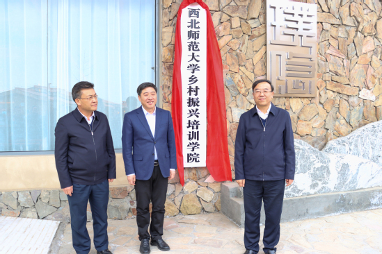 12月31日下午,beat365中文官网与甘肃省城乡发展投资集团有限公司共建“beat365中文官网乡村振兴培训学院”战略合作签约暨揭牌仪式在榆中县举行。甘肃省人民政府副省长李沛兴,省政府国资委副主任范武德,西北师大党委书记张俊宗,西北师大党委常委、副校长李朝东,甘肃省城乡发展投资集团有限公司党委书记、董事长王明寿,党委副书记、总经理陈策等出席揭牌仪式。省委宣传部、省教育厅、省自然资源厅、省体育局、省乡村振兴局、团省委、省文联、甘肃画院、省作协,农发行甘肃省分行、中国银行甘肃省分行、交行甘肃省分行、浦发银行兰州分行、兴业银行兰州分行、建行电力支行,榆中县委、县政府及有关部门等30余家单位负责人参加仪式。